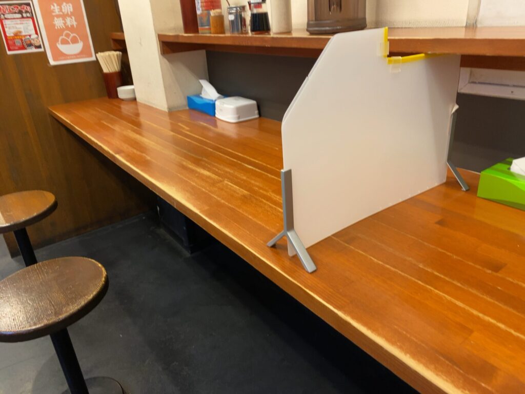 仕切りの付いたカウンターは6席あり、奥に4人用のテーブルが4つほどあったかと思います。