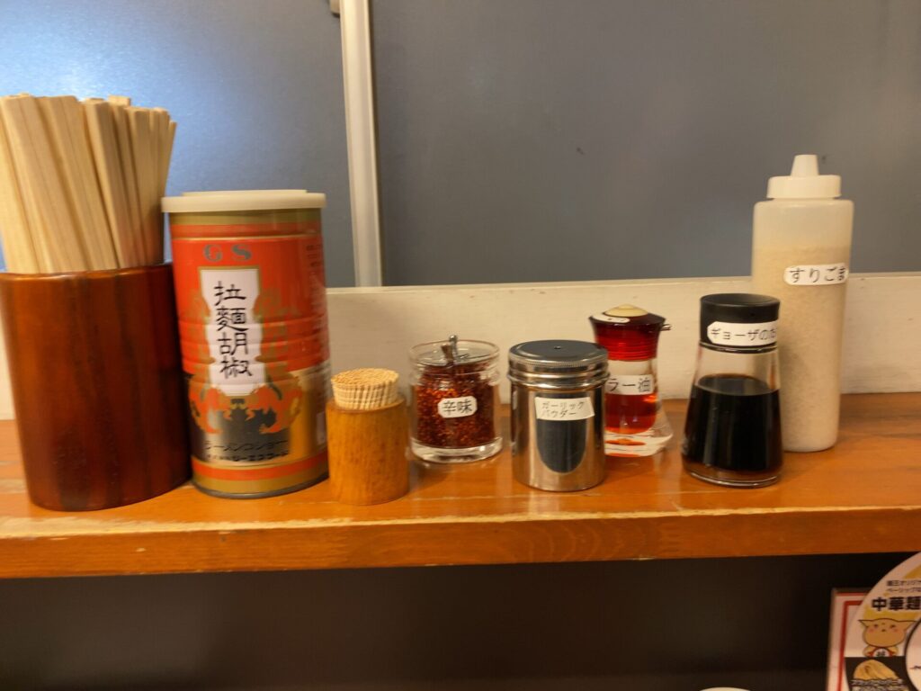 胡椒に一味、ガーリックパウダー等、調味料が充実しています。
