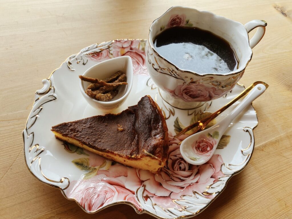 バスク風のクリームチーズケーキと、ゴボウのかりんとう付き。