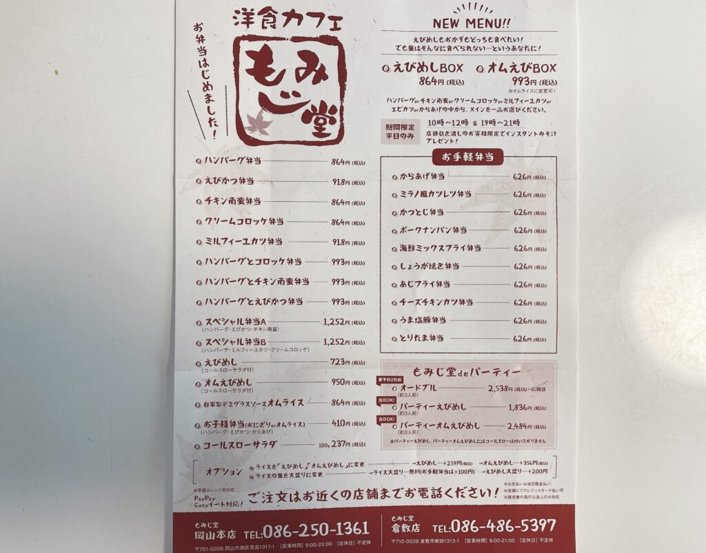 【岡山市南区のテイクアウト】洋食カフェ もみじ堂の持ち帰り弁当がイケる!えびかつ弁当、チキン南蛮弁当、オムえびめしが美味い!
