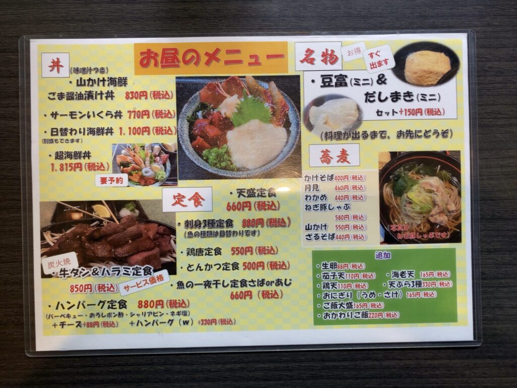 八右衛門のランチメニューは丼、定食、蕎麦等で魚や肉や豆腐料理がいっぱい!ホルモンラーメンも!!