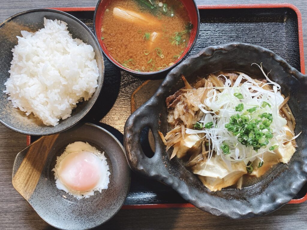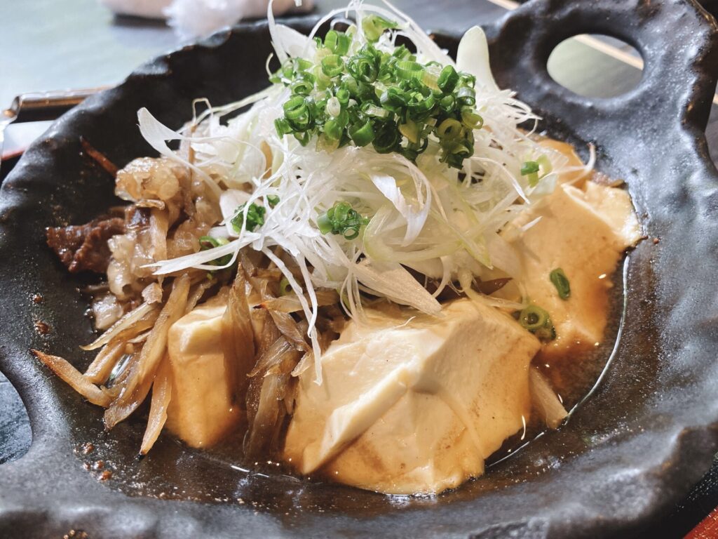 色んなメニューを見たりして、注文してから15分ほど経って、先にオリーブ牛肉豆腐定食が運ばれてきました。