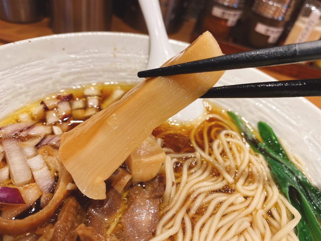 1㎝角くらいある極太のメンマのサクッっていう歯ごたえが堪りません。