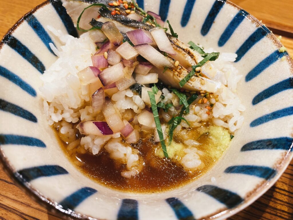 もうちょっと〆鯖が欲しいところですが、メニューに載っていた食べ方をやってみましょうか。