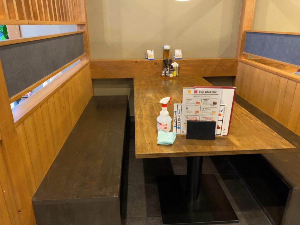 8人座れるのでは?っていうボックス席が3つと、テーブル席が3つ見えましたが、定かではありません。