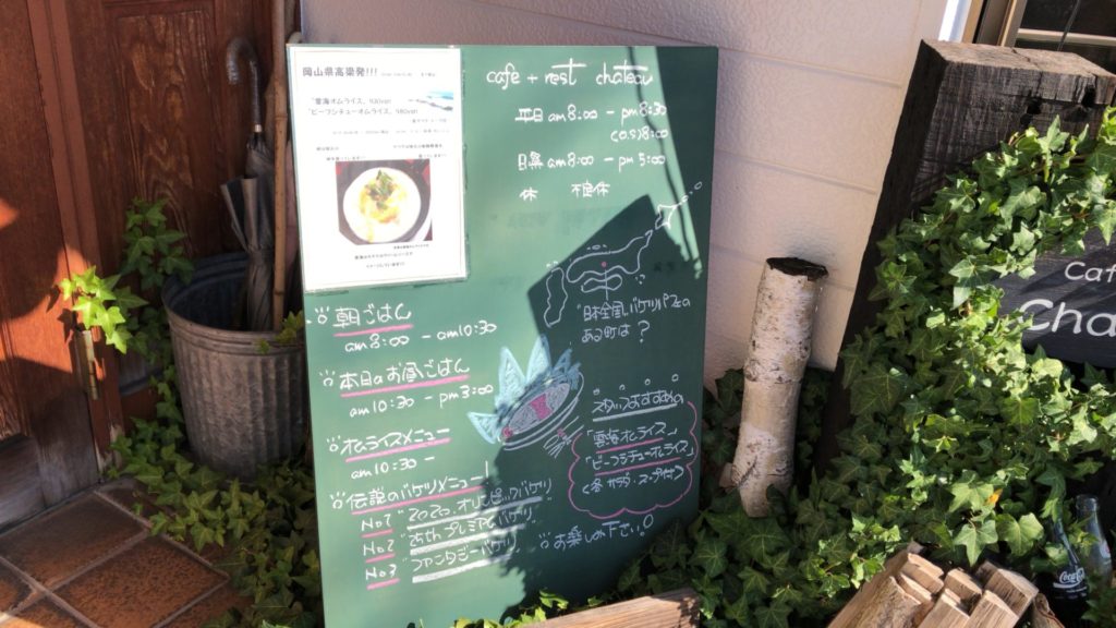 高梁駅から徒歩で10分くらいのところにある、カフェ・レスト・シャトー(CAFE REST CHATEAU)っていうお店です。