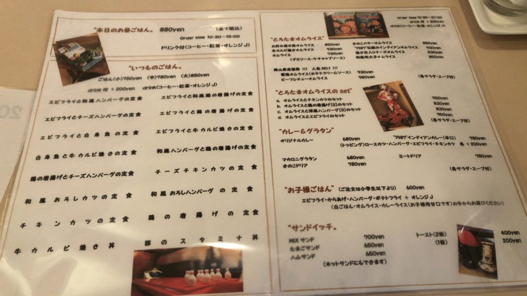岡山市内に帰ってからランチにするか、高梁で早めに食べて昼の時間を移動時間にするか迷いながらも、高梁市で探してみると近くで10時30分からやっている店を2軒発見!
