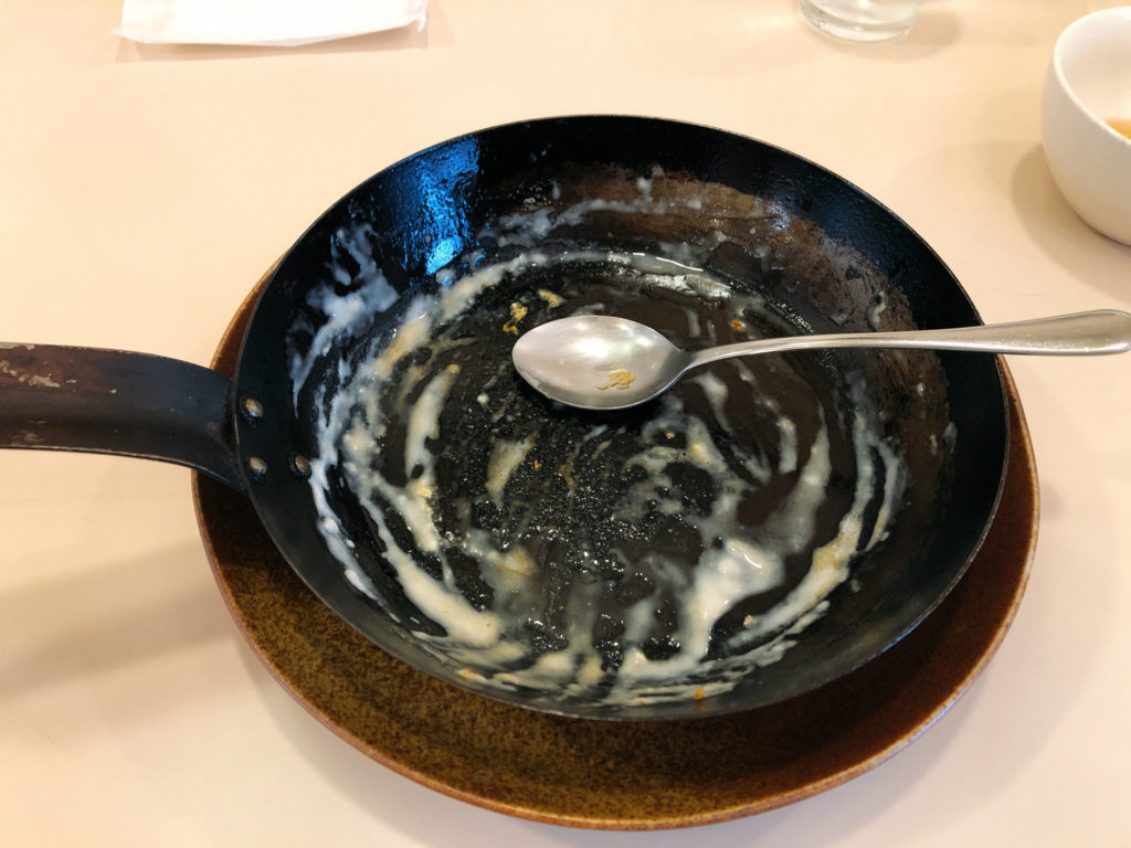 パンでもあれば、フライパンに残ったソースを残らずいただくんだけど。