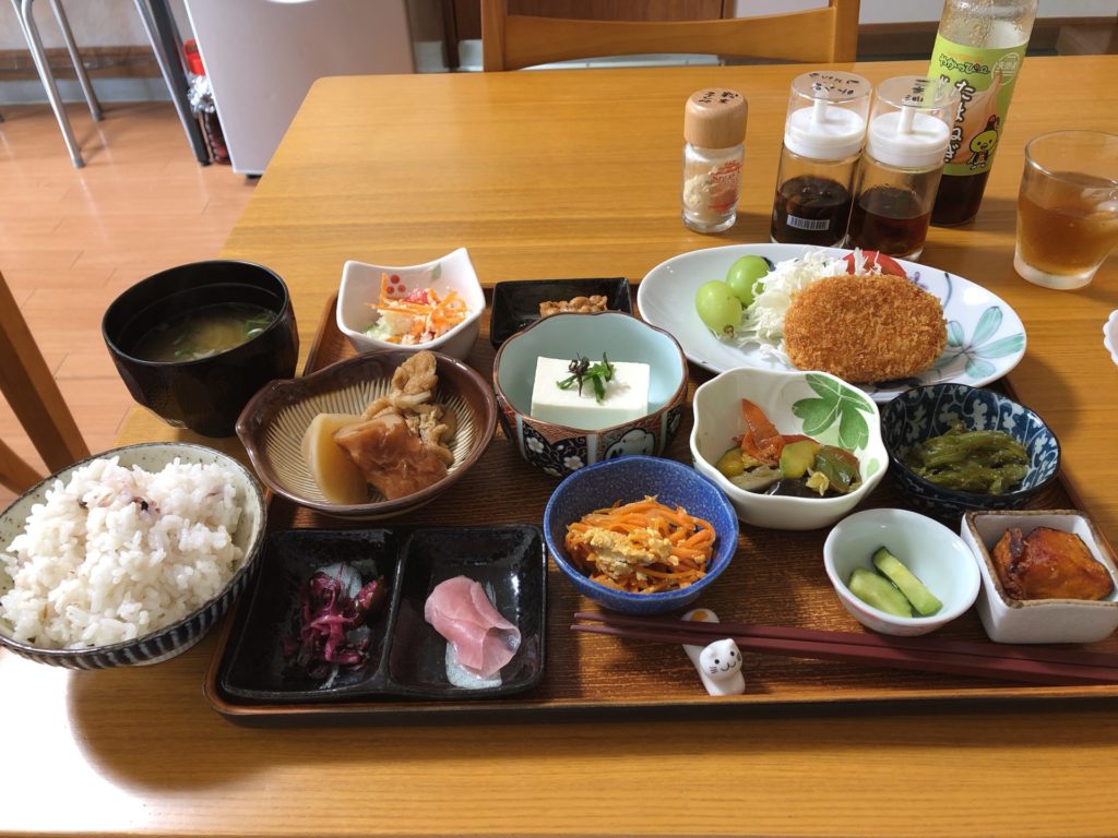 味噌汁を入れて12品プラスご飯(五穀米)ですが、写真では見ていたものの、実際に目の前にすると種類の多さに驚きます。