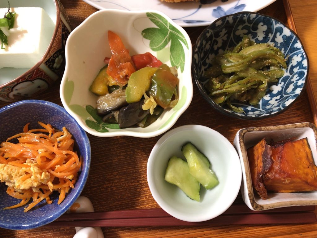 いよいよ五穀米の茶碗を左手に、小鉢のおかずを楽しみます。