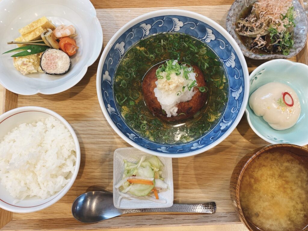 メインの海老しんじょや刺身はもちろん、小鉢から味噌汁、漬物まで全てに満足で次回は夜にも来てみたくなる!