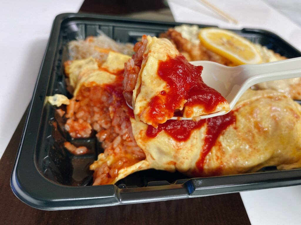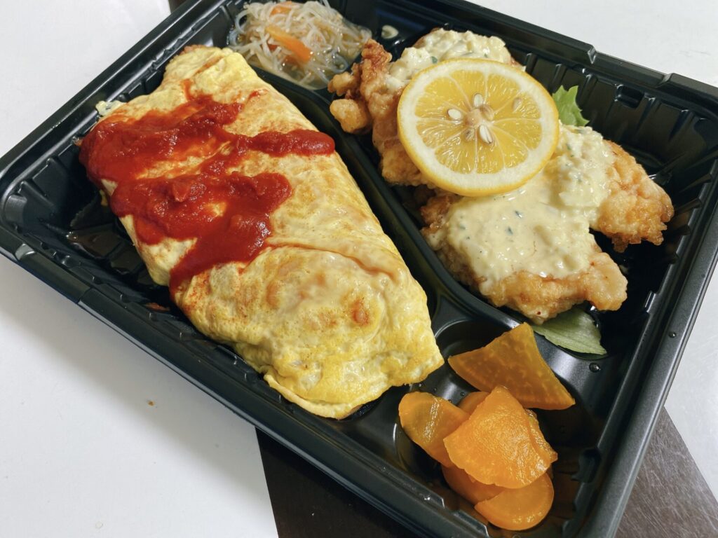 コレがDXオムライス弁当で、オムライスとチキン南蛮ですね。