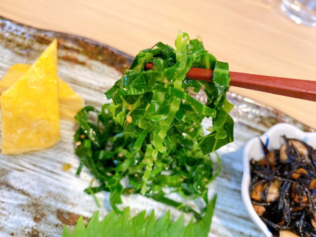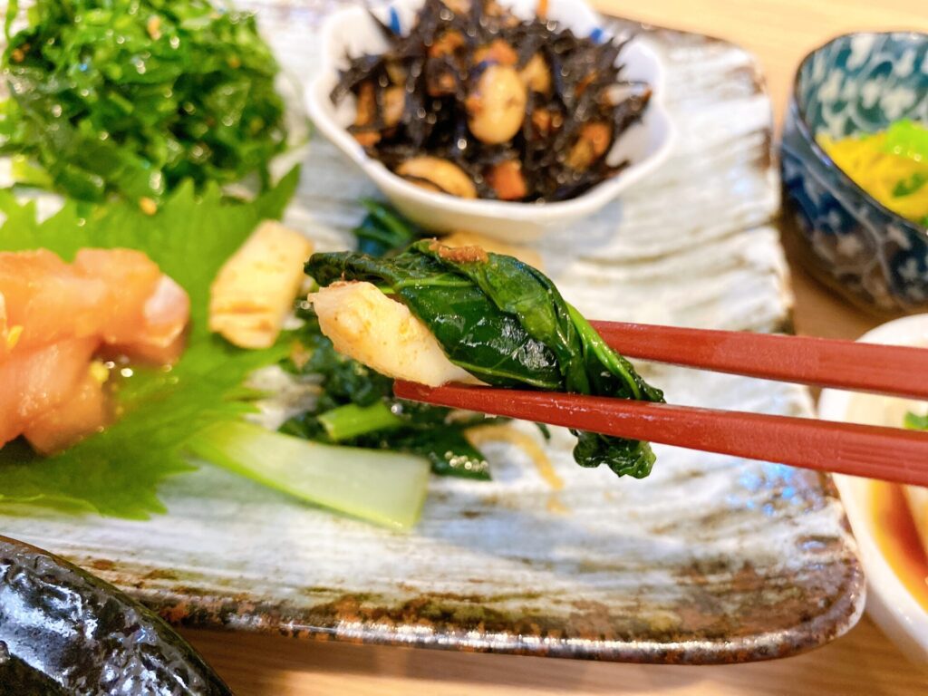 マグロのワサビ漬けも、普通の刺身とはまた違った美味しさで、大葉と一緒に食べると、また別の美味しさを楽しめました。
