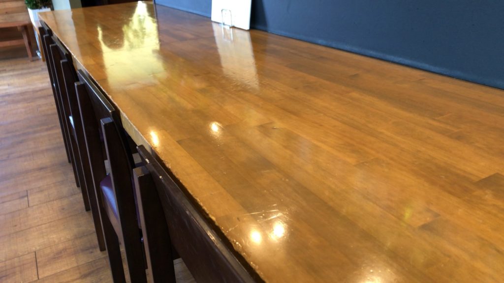 奥行きがあり、高さもちょうどで、とても落ち着くカウンターです。