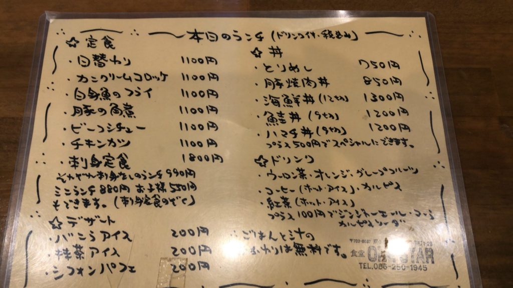 先日、ランチの店を探している時にネットで見つけた、南区の天満屋ハピータウン岡南店から約1㎞のところにある、居酒屋の、食堂ワンスター。