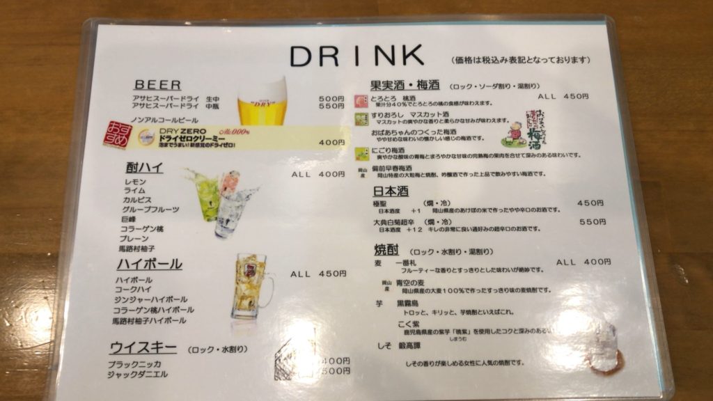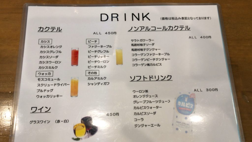 臆することなく、ランチタイムと、居酒屋になる夜のメニューをチェック。