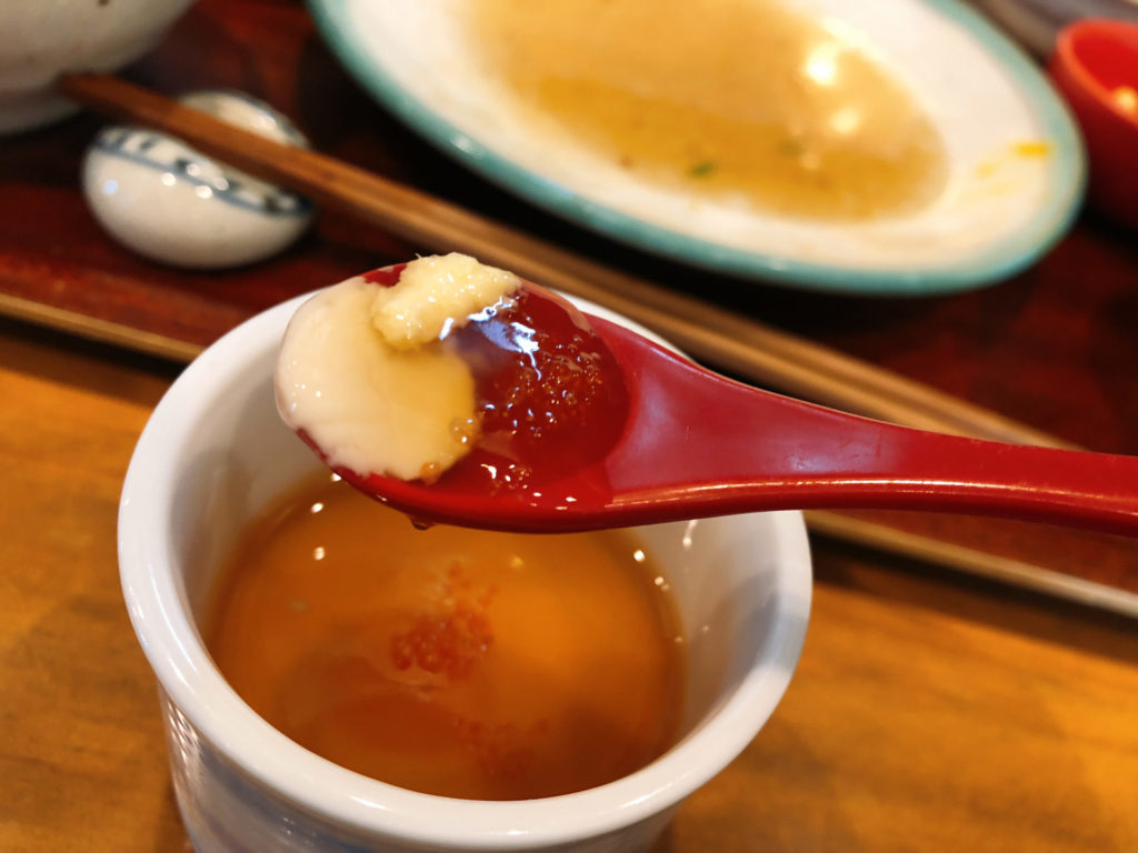 食べてみると、少し濃いめの味付けで、冷静の茶碗蒸しってところでしょうか。
