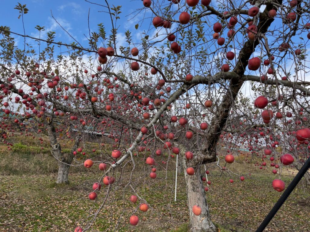 会社がオーナーになっているリンゴの木、約30本の収穫作業を兼ねての旅行。