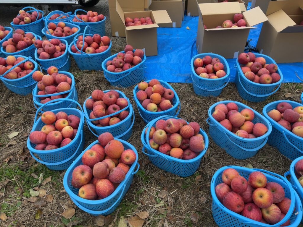 バスを広い場所に置いて、リンゴの木のあるところまで徒歩で数分。