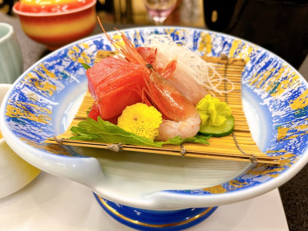 鮪と鰤と甘えびの刺身はどれも新鮮!