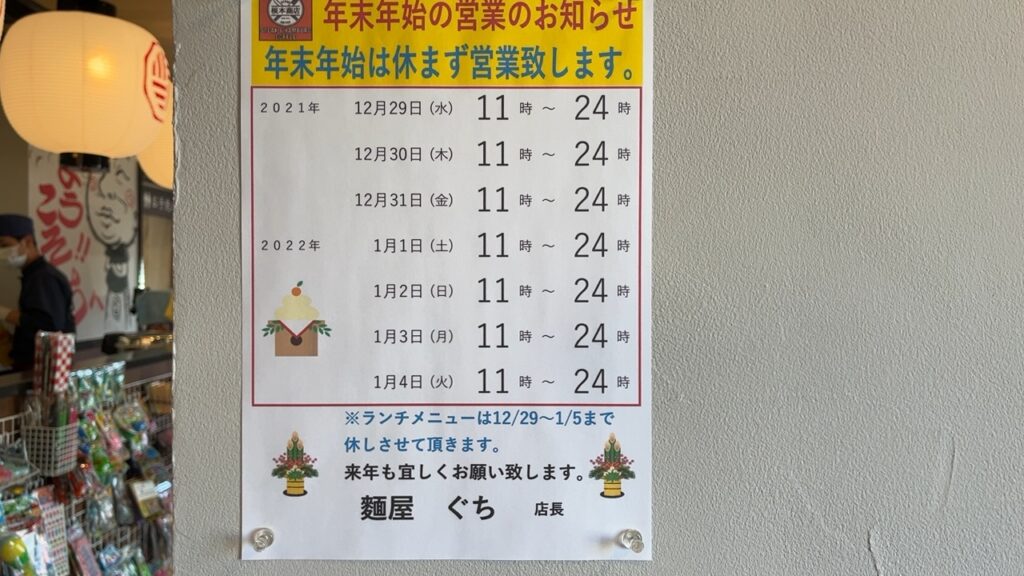 年末年始も営業されますが、1月6日はお休みされるとの事。