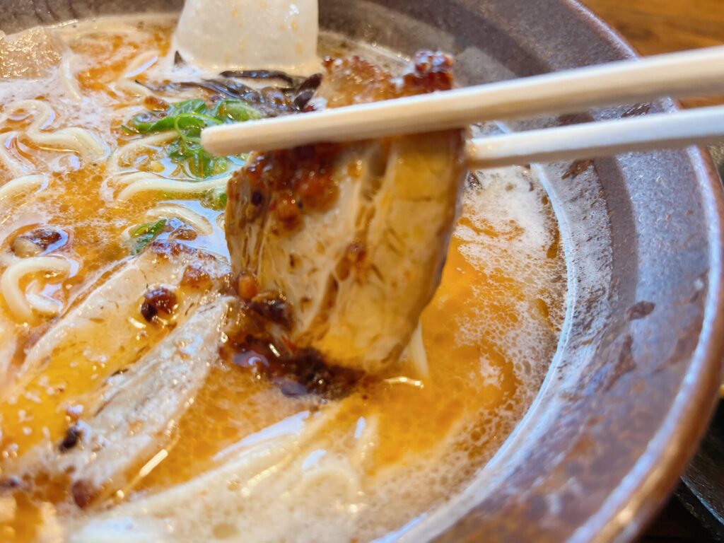 チャーシューもトロトロでは無いものの、バーナーで炙ってから出されているんでしょうね、美味しい味に香ばしさがプラスされている感じ。