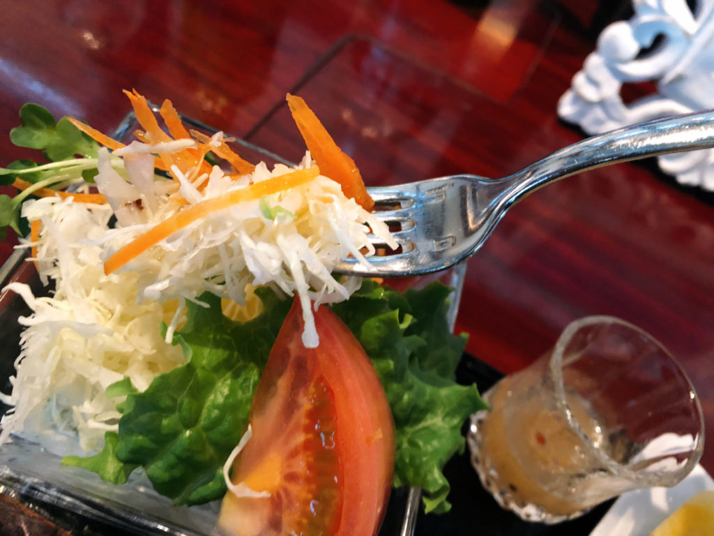 ドレッシングが、細く刻んだキャベツととても合ってます。