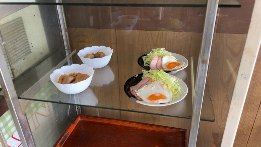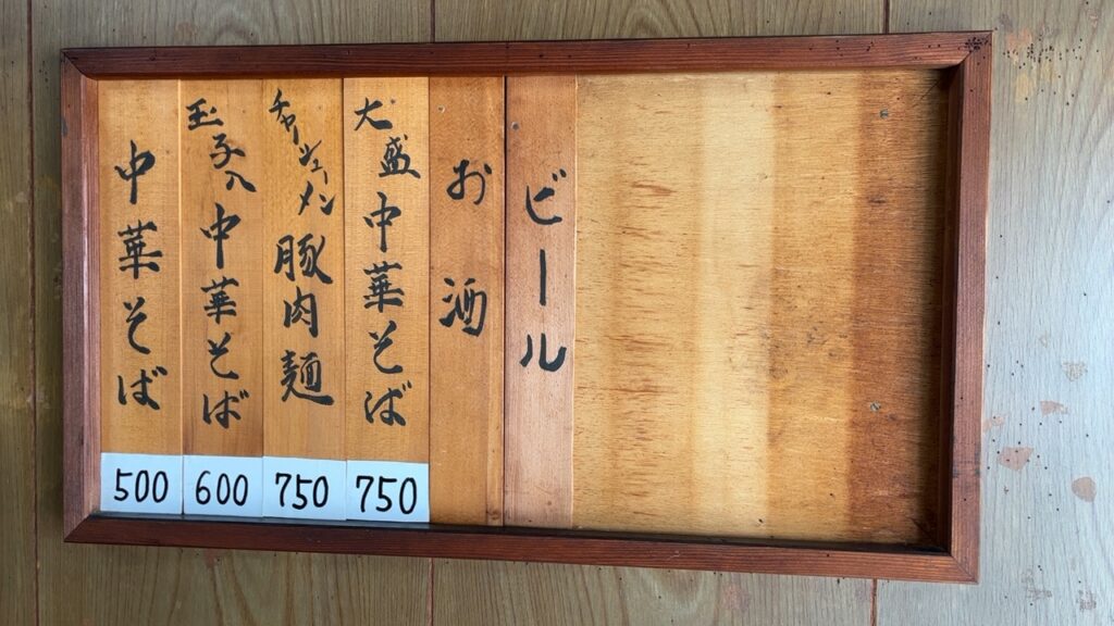メニュー表の木枠の右側に、明らかに他にもあったであろう跡が付いているので、前は色んなメニューがあったんでしょうね。