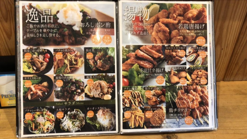 パチャマンカのランチタイムは、名物の親鶏骨付きモモ定食と、とさかポン酢!でも串や揚げ物も美味しそう