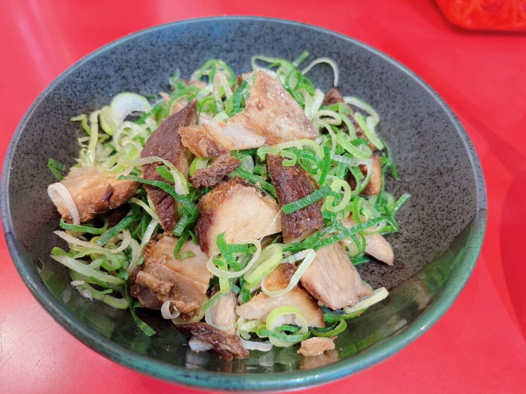 チャーシューは柔らかいんですが、角切は噛み応えがあります。