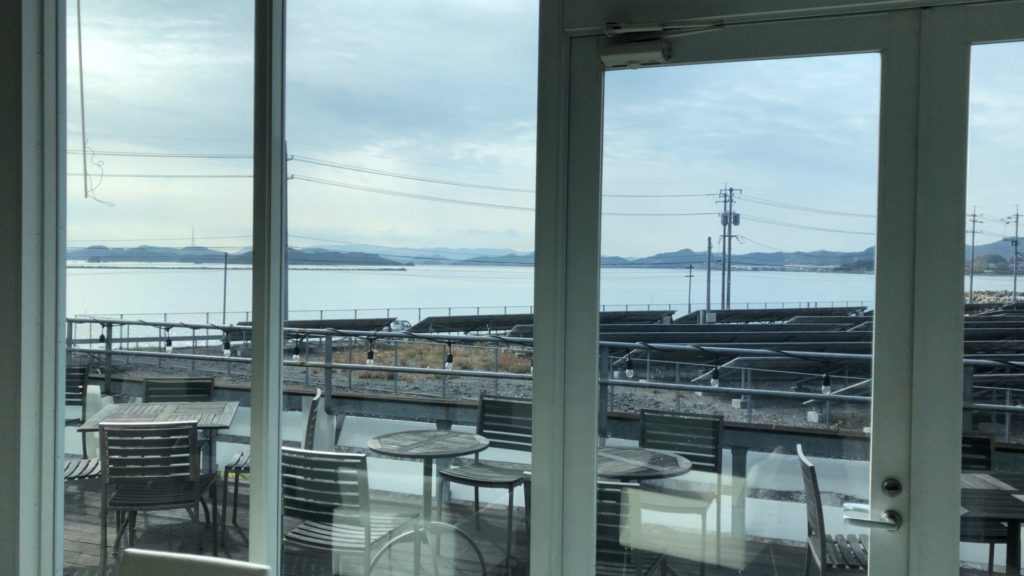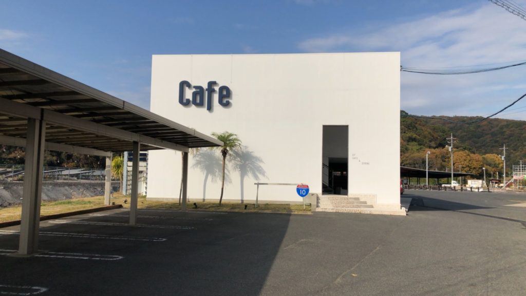 岡山市内に帰るには、ちょっと遠回りになりますが、備前田井駅の方から海岸線を走っていると、白い壁に「Cafe」の文字のある四角い建物が見えてきます。