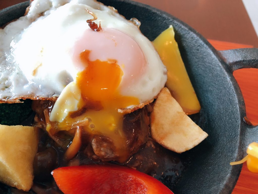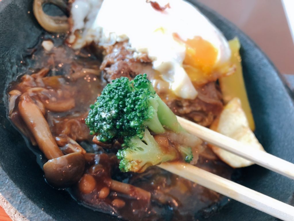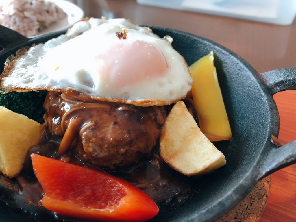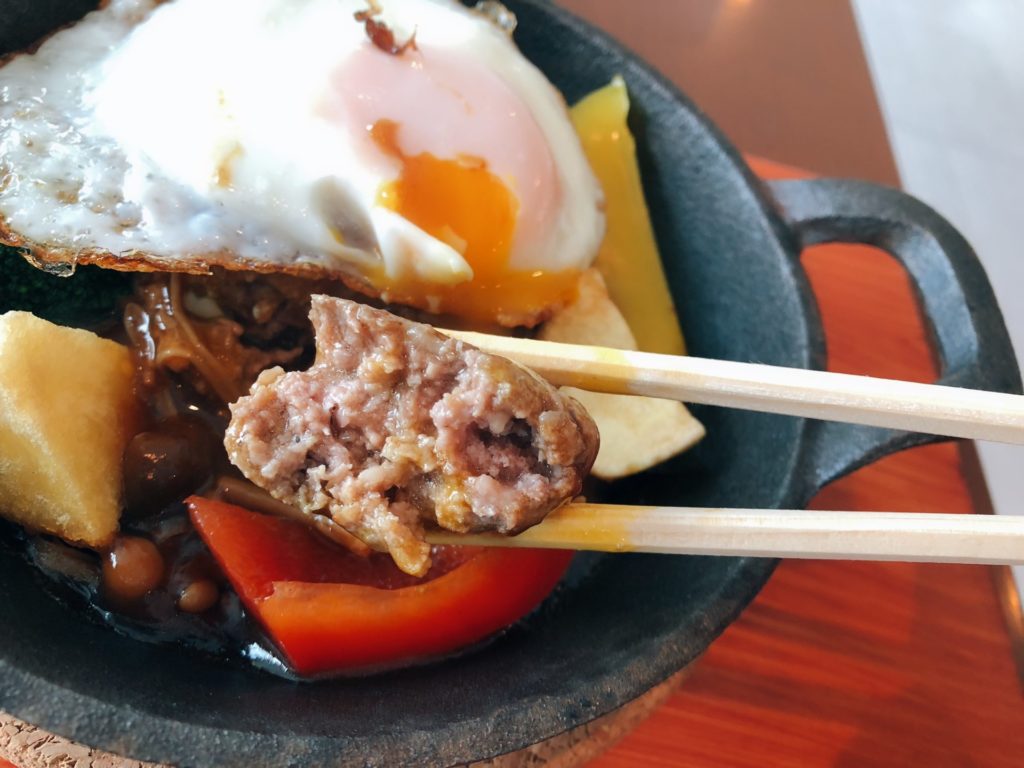 注文してから20分くらいで「千屋牛を使ったハンバーグ」が、熱々の鉄板に乗せられてきました。