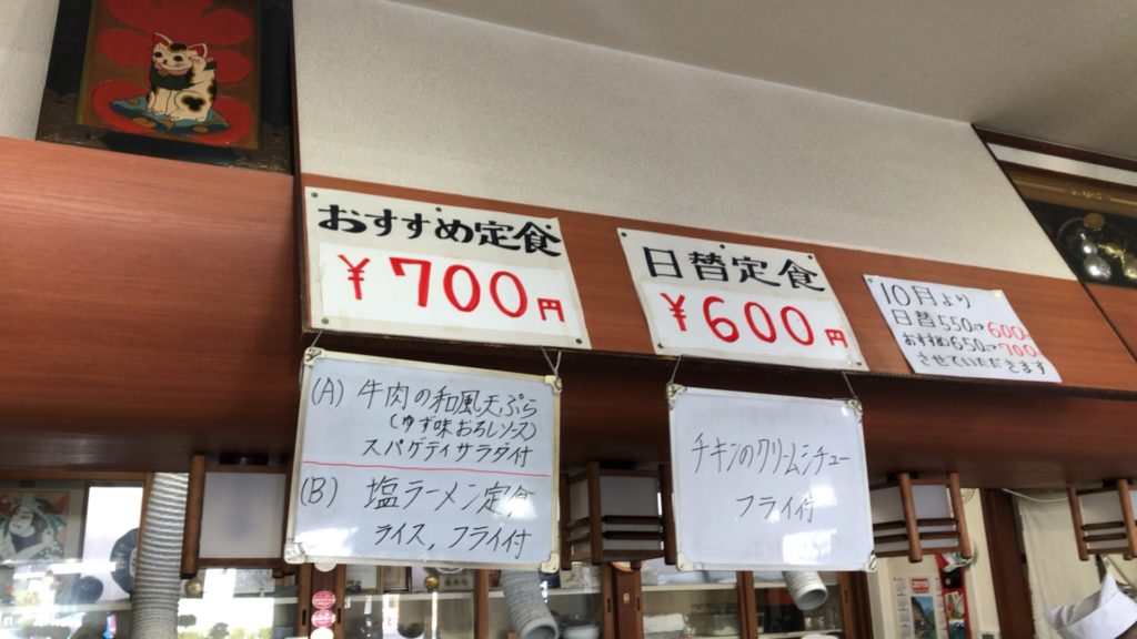 おすすめBが、「塩ラーメン定食 ライス フライ付」で、こちらも税込700円!!!!