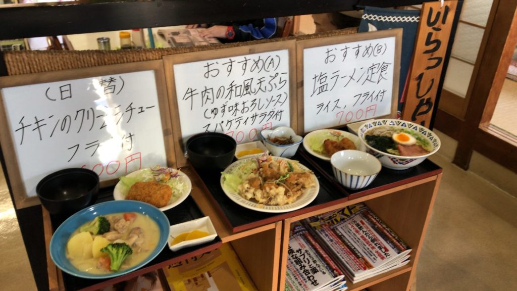 ドアを入ってすぐ前に、今日のメニューの実物が置いてあります。