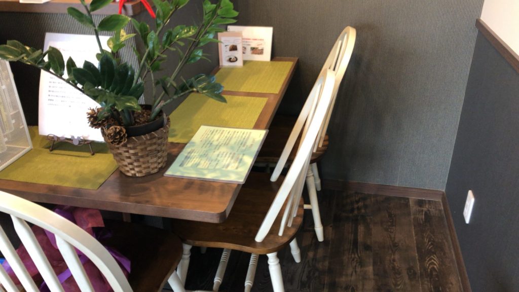 他のお客さんもおられなかったので、お好きな席にと言われ、一番奥の2人テーブルの席に着座です。