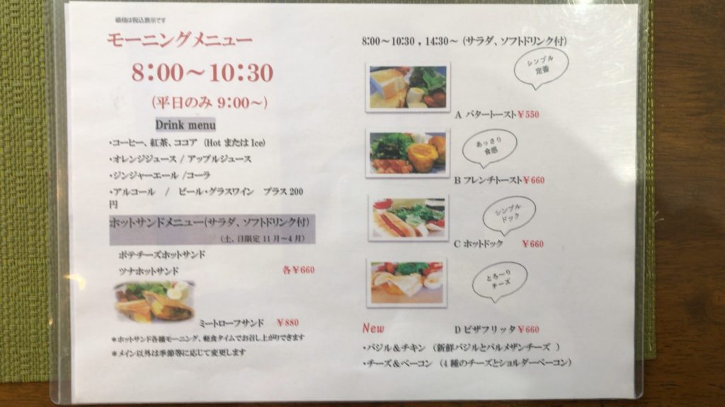 内容もいいし、お値段もリーズナブルなので、モーニングについて店主に聞いてみると、今はやってたり、やらなかったりって感じだそうです。