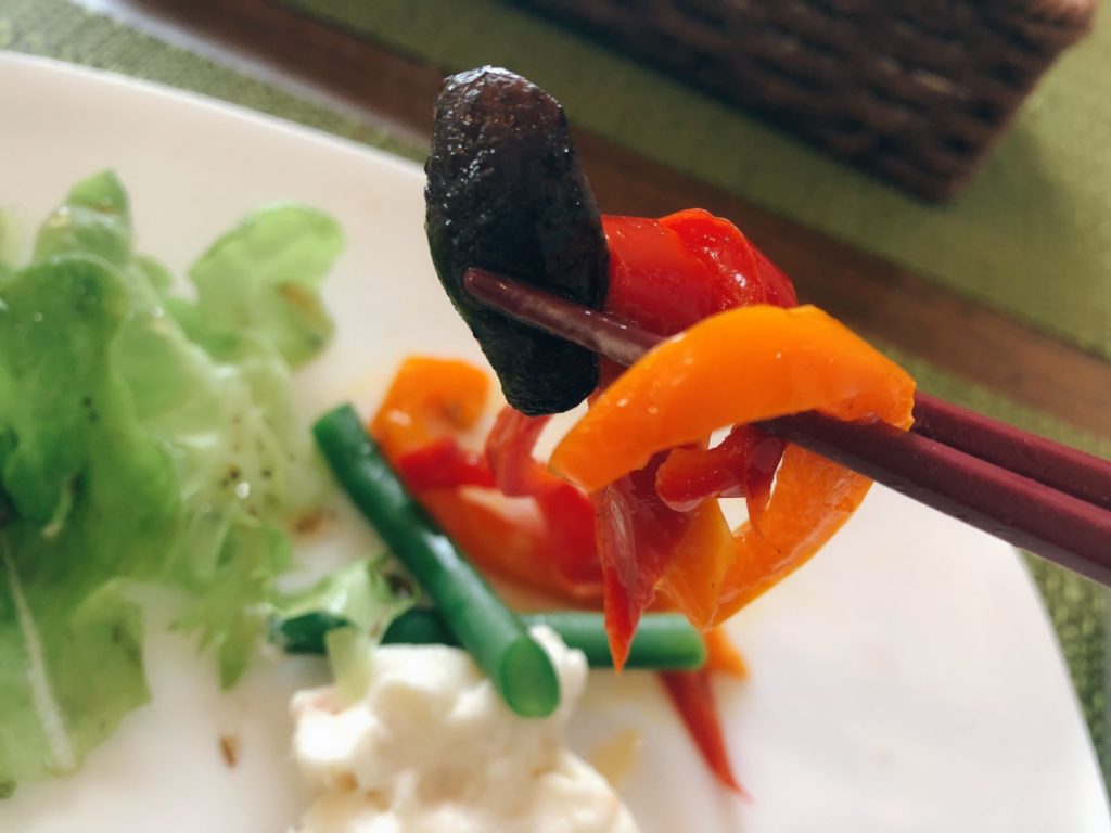 インゲンの歯ごたえも、本当にちょうどよく、キノコとパプリカのソテーも〇でした。