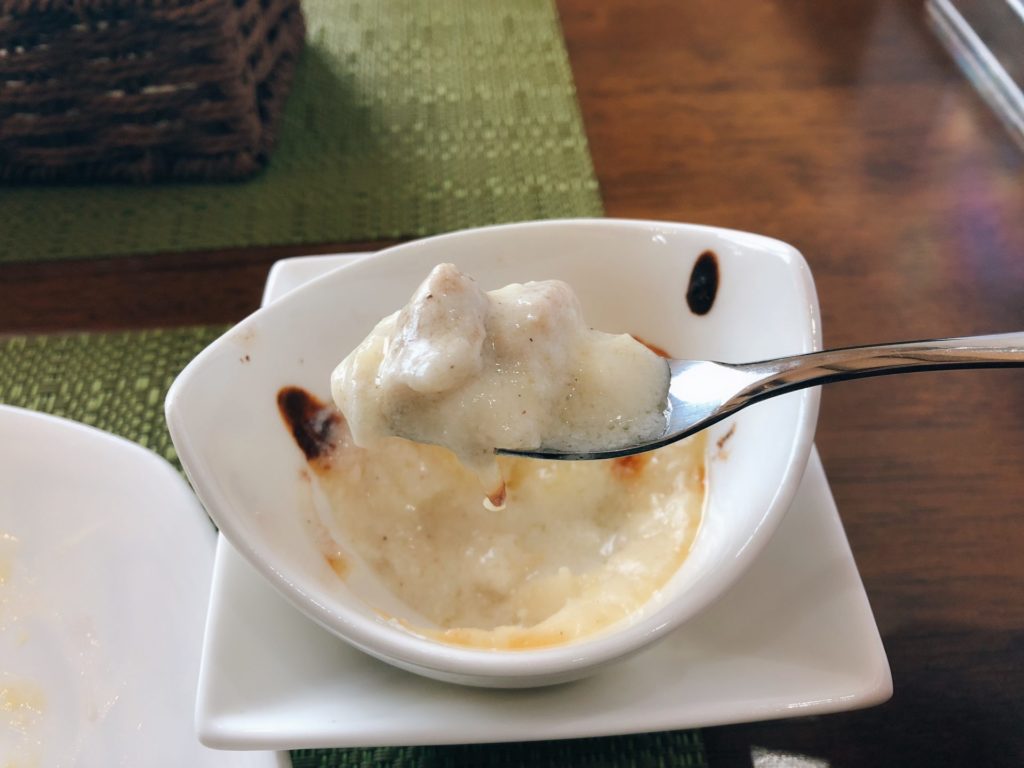 グラタンも出来立て熱々で、鶏肉の出汁がよく出ていて、もっと欲しいくらいでした。