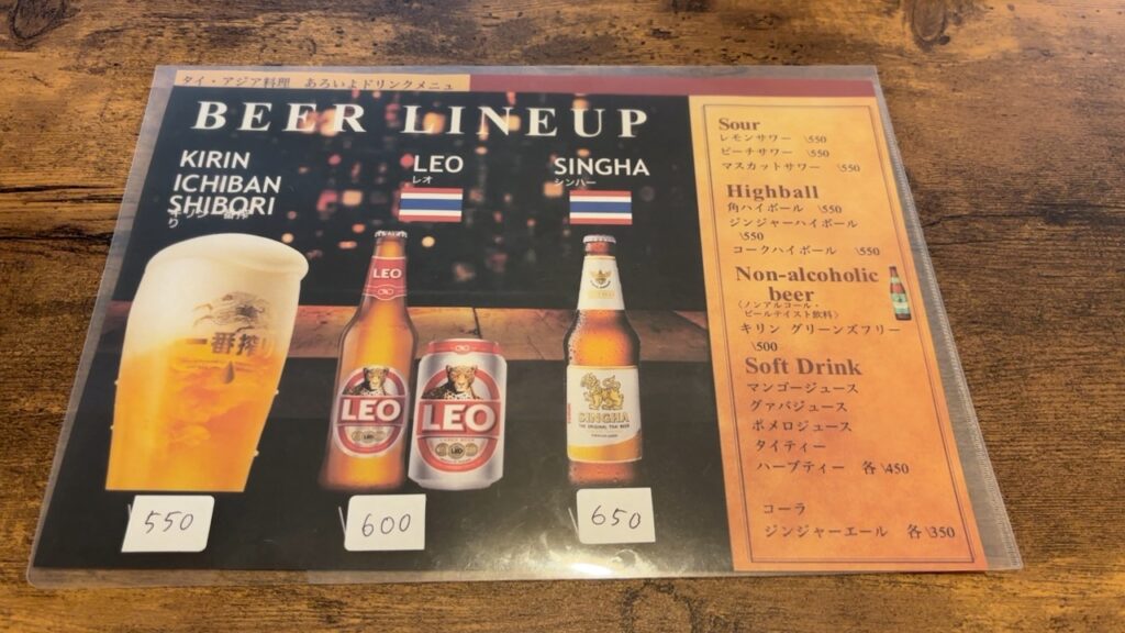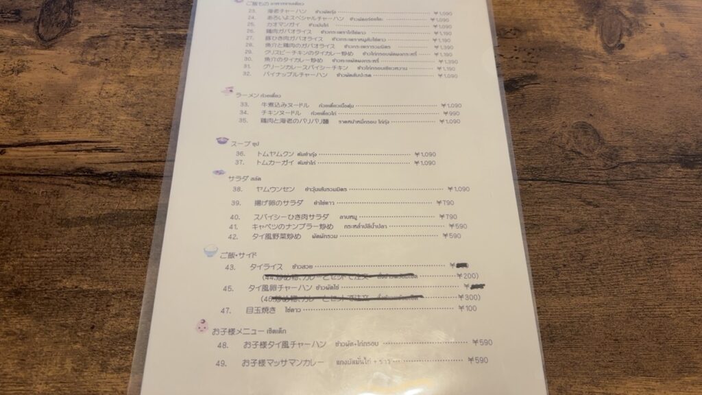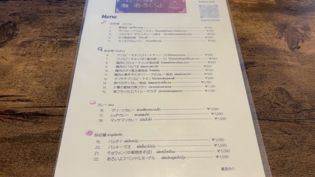 ガパオライスにパッタイ、カレーも美味しそう・・・今回決めたのはカオマンガイとあろいよスペシャルヌードル!