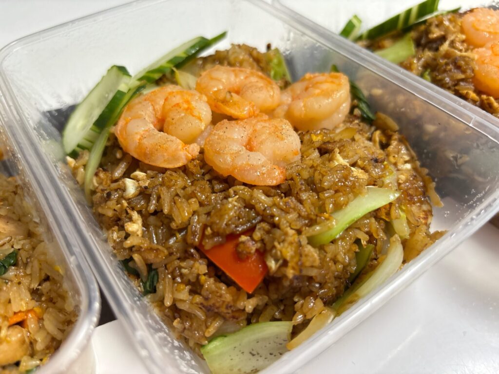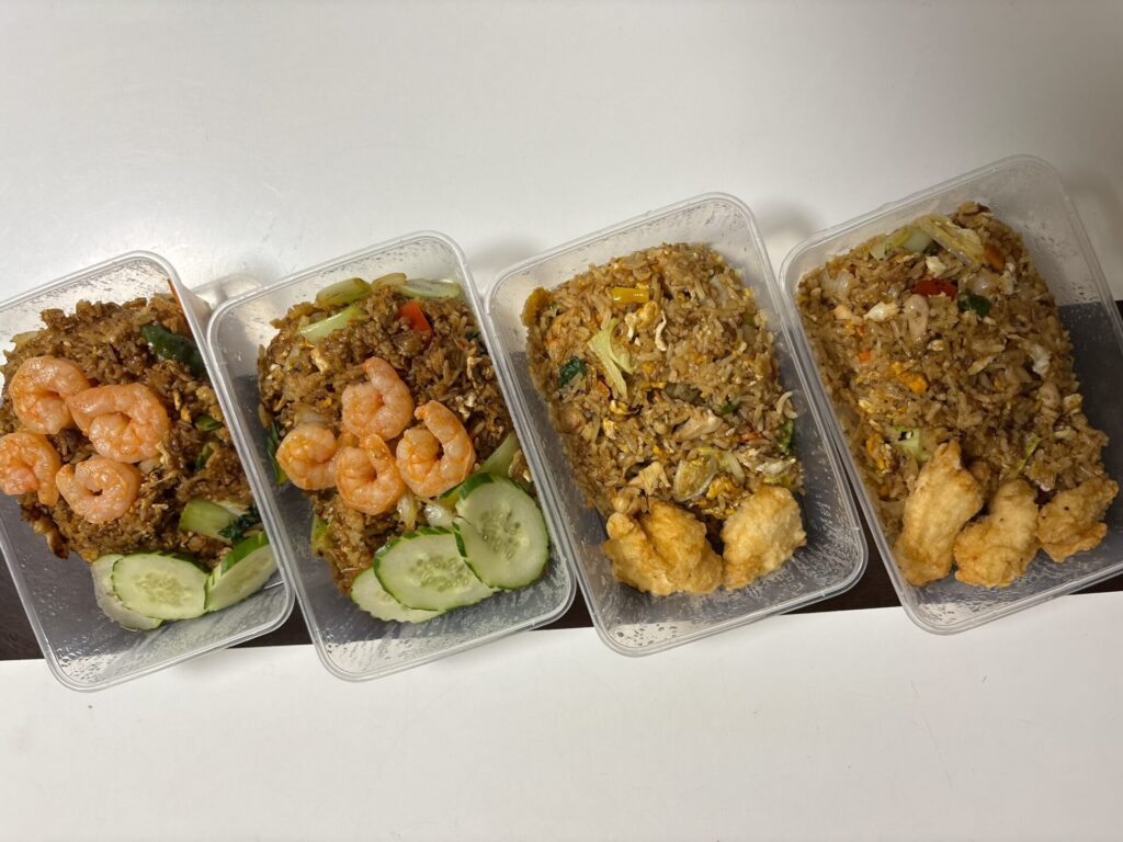 単品メニューから、海老チャーハン 1090円を2つとお子様タイ風チャーハン 590円を2つテイクアウトでお願いしておきました。