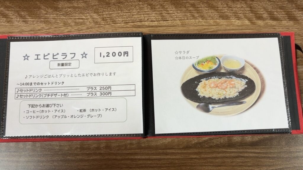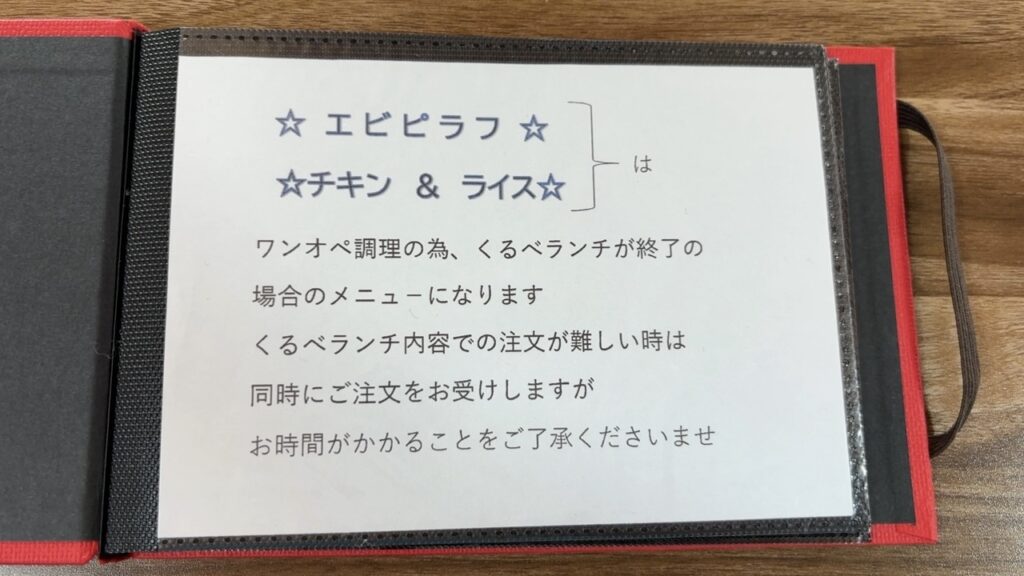 くるべランチに苦手なものがある時や、ランチ終了時はエビピラフやチキン&ライスもあります。