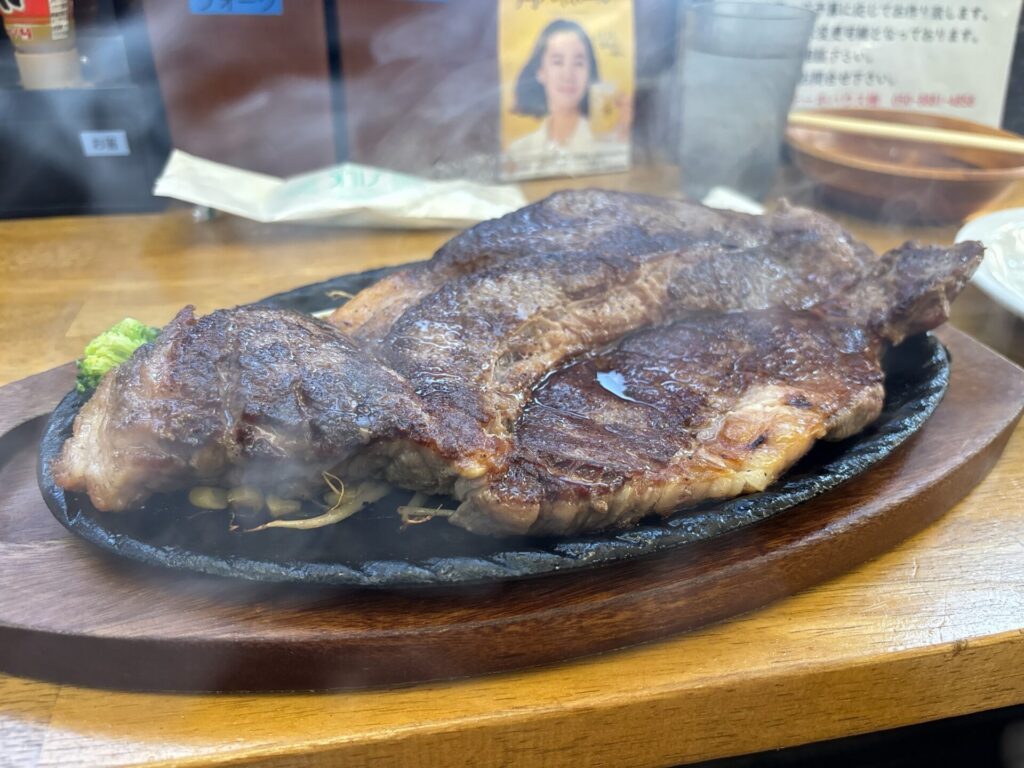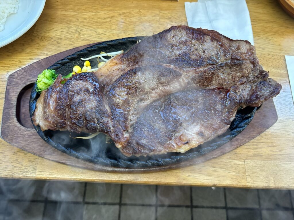 次男の備前黒牛牛肩ロースのビッグバンステーキ