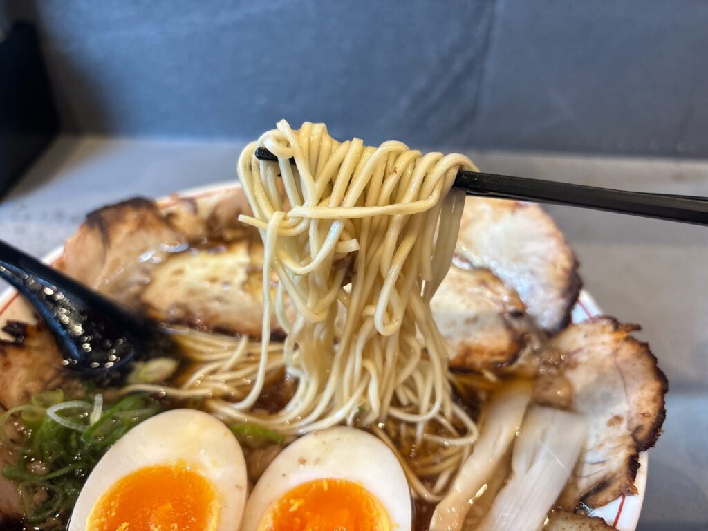 そしてそのスープをしっかり絡めてくれるのが、細平打ちの麺で、味も噛み心地も最高です。