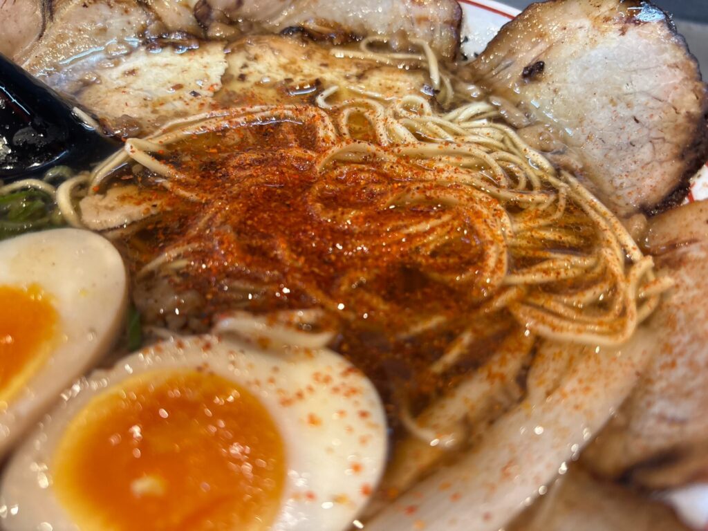 少し食べたところで、一味を加えて味変。