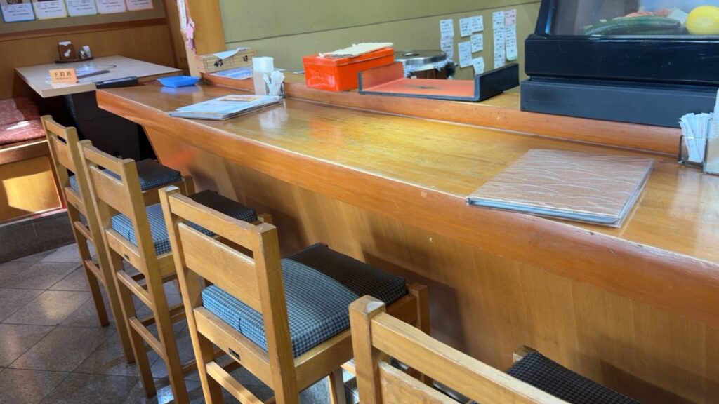 通常の入り口から入ると、すぐにカウンターが数席あります。