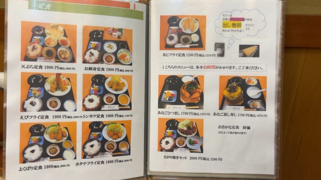 天ぷらや刺身等の定食やタルタル丼等、美味しそうで豊富なメニューに迷うこと必至!出汁巻きは頂きたい!