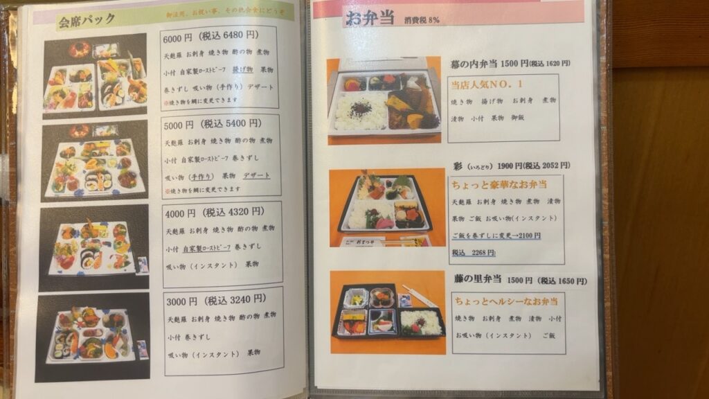 会席やお弁当のテイクアウトもあります。