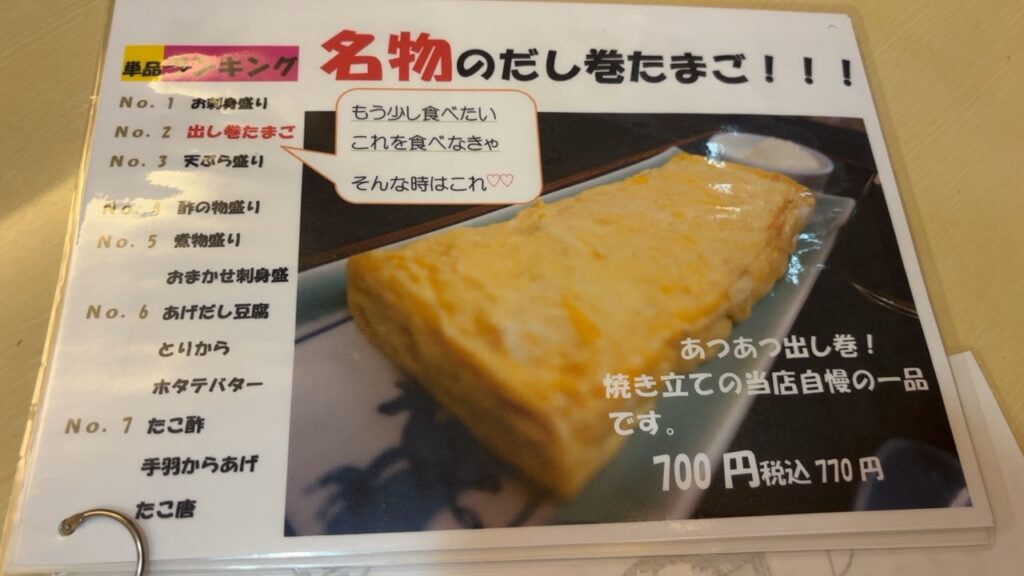 コレコレ、今日はこの出し巻きたまご 770円も注文しました。