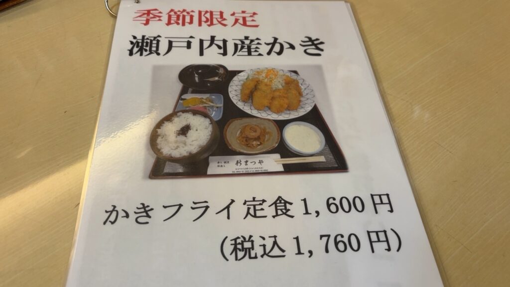 季節限定のカキフライ定食 1,760円。