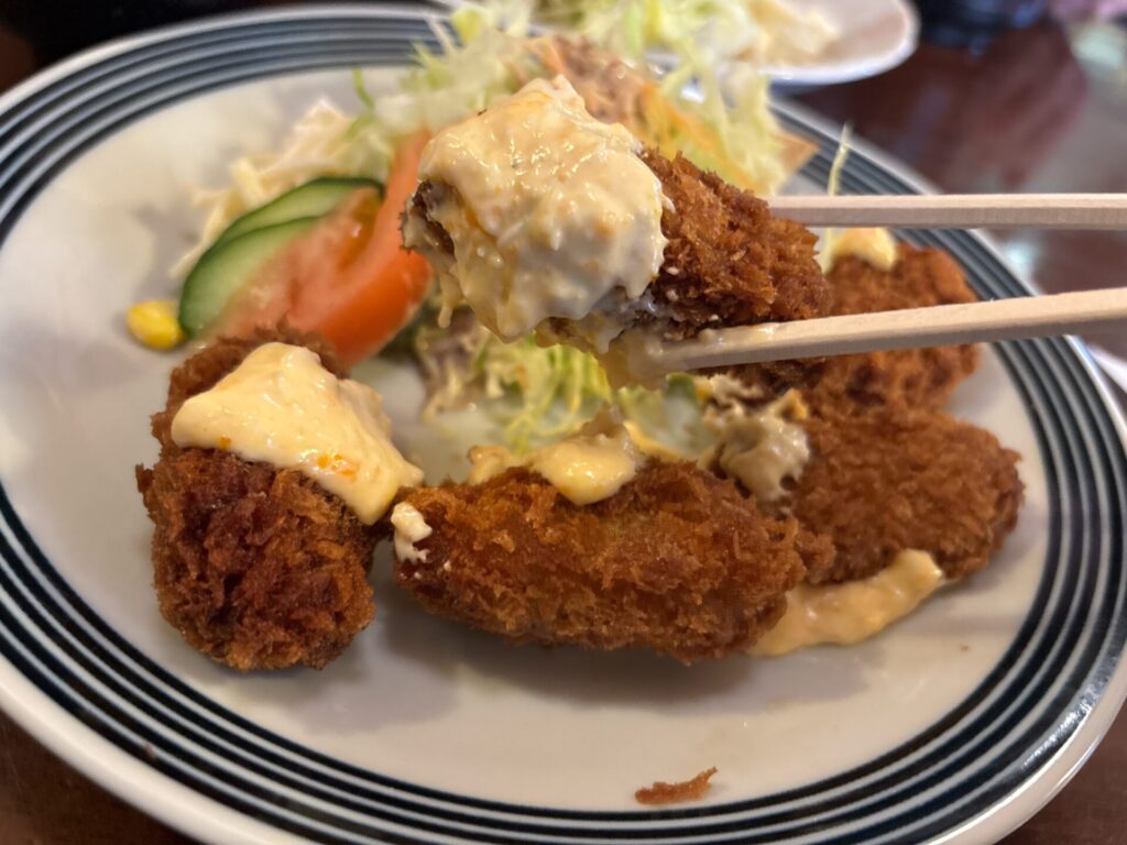 サクサクの衣にジューシーなカキが堪りませんね。
